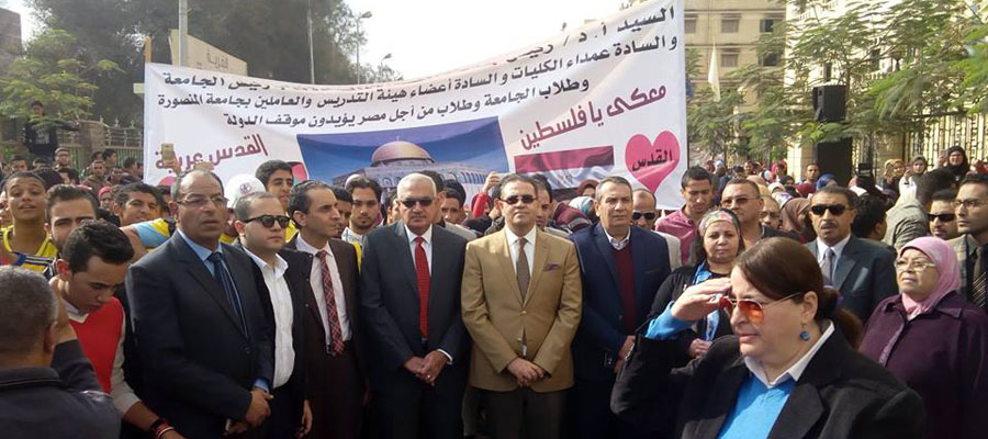 الآلاف من طلاب جامعة المنصورة يعلنون رفضهم للقرار الأمريكى بنقل السفارة للقدس