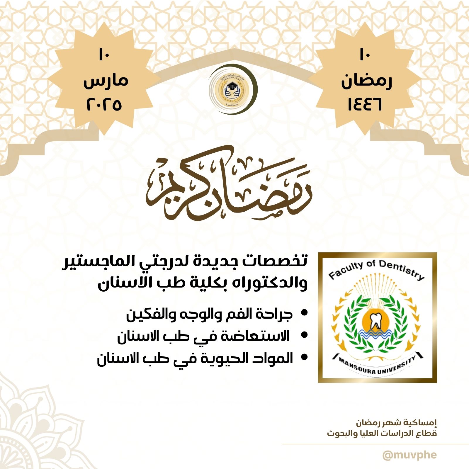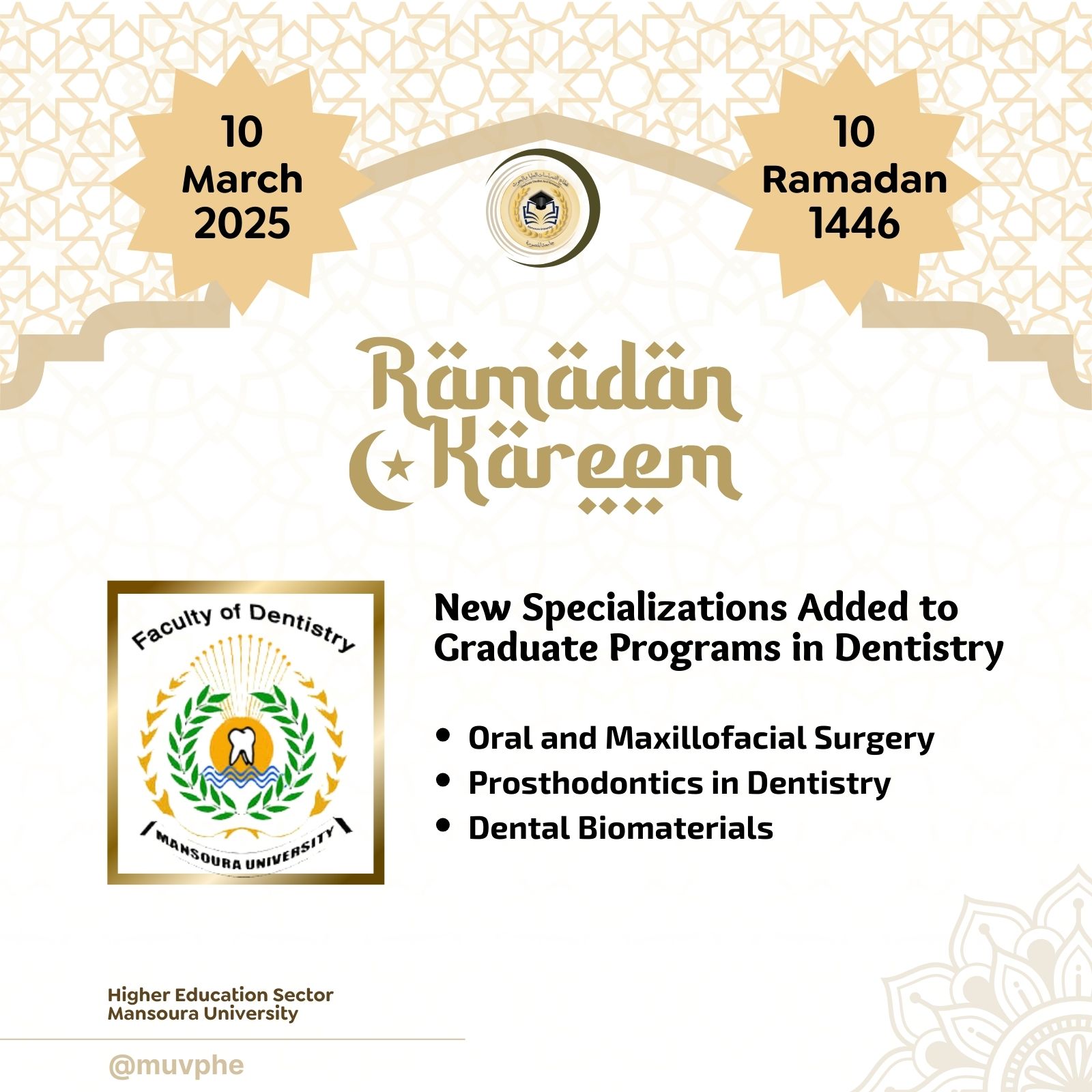في روح النمو والتجديد هذا رمضان، يسعدنا الإعلان عن تخصصات جديدة في برامج دراسات طب الأسنان!