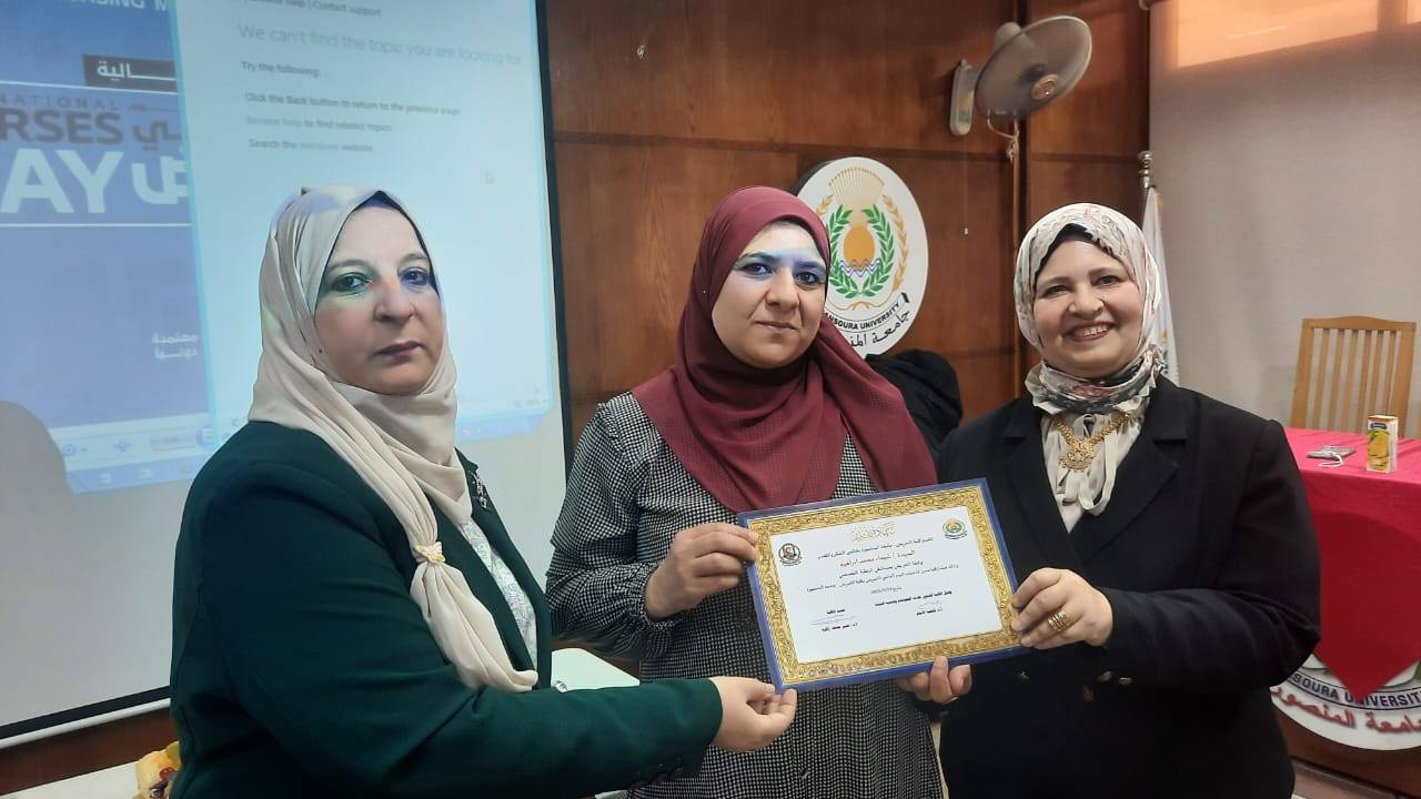 وتضمنت الفعالية تكريم عدد من رؤساء هيئة التمريض بالمستشفيات الجامعية والمراكز الطبية ووزارة الصحة بمحافظة الدقهلية، إضافة إلى توزيع شهادات التقدير ودروع التكريم لكوادر التمريض المتميزة، وذلك في أجواء من الفخر والاعتزاز.