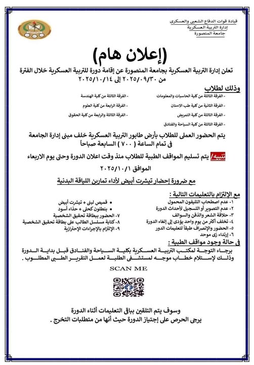 اسماء الطلاب المحتم حضورهم في دورة التربية العسكرية في المده من ٩/٣٠ أسماء الطلاب المحتم حضورهم في دورة التربية العسكرية في المده من ٩/٣٠اضغط هنــا ..