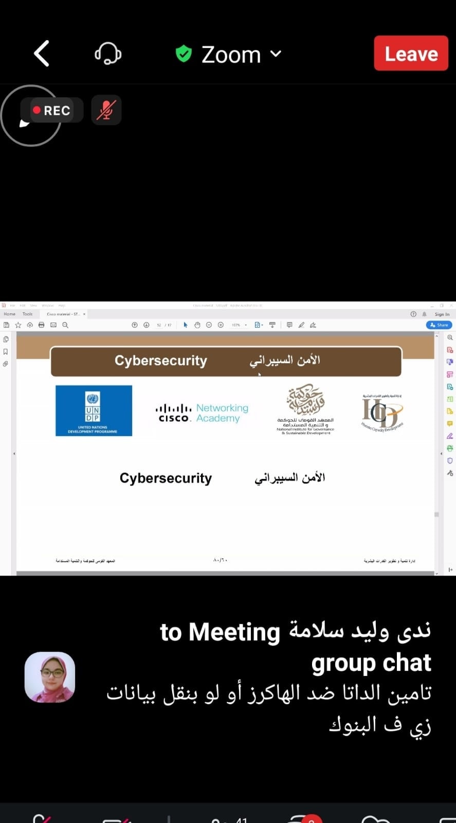 شاركت جامعة المنصورة في استكمال فعاليات المبادرة التدريبية "معاً لمستقبل رقمي" التي ينفذها المعهد القومي للحوكمة والتنمية المستدامة – الذراع التدريبي لوزارة التخطيط والتنمية الاقتصادية – بالتعاون مع شركة CISCO، وذلك عبر تطبيق Zoom، بهدف تعزيز مهارات طلاب الجامعة الرقمية وزيادة وعيهم بالأمن السيبراني.