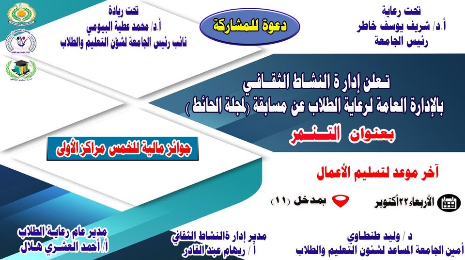 الإعلان عن الإشتراك فى مسابقة لمجلة الحائط بعنوان التنمر