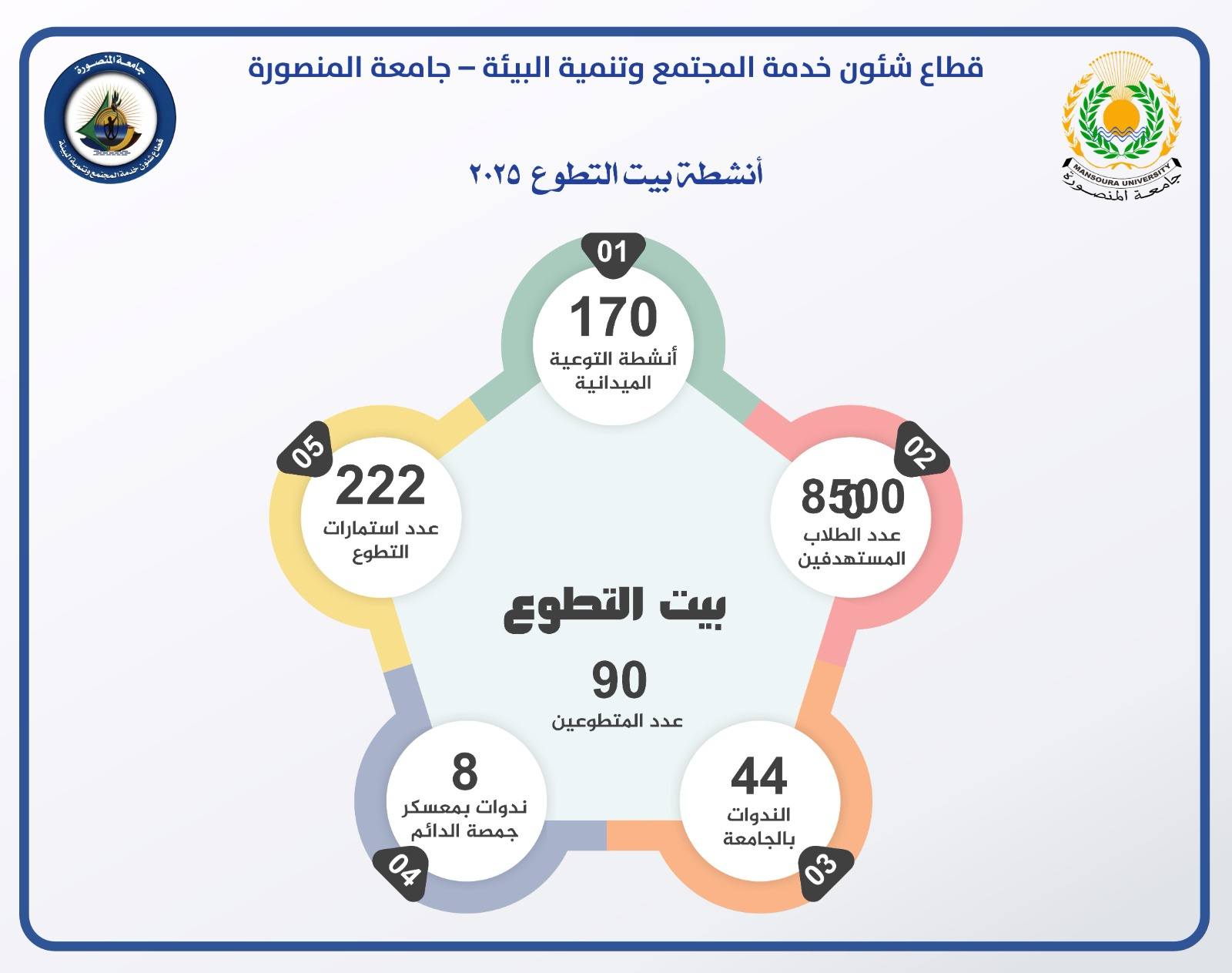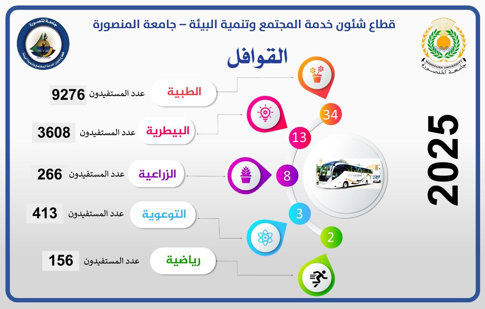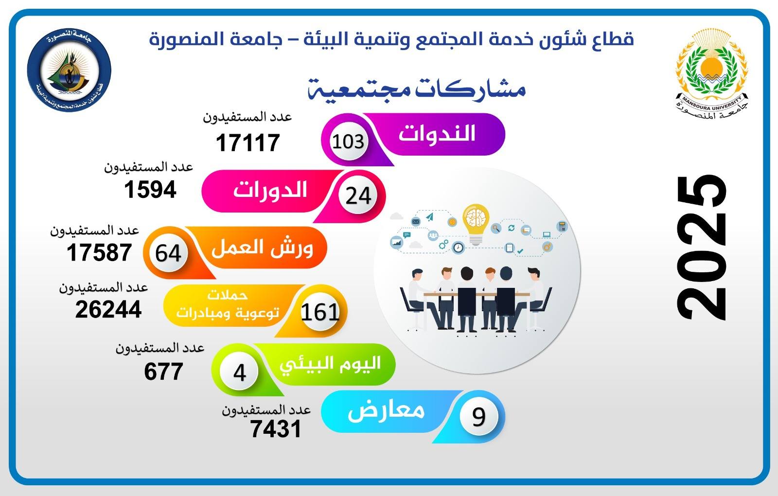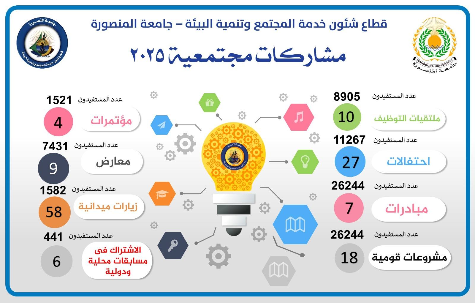واصلت جامعة المنصورة، خلال عام 2025، أداءَها الوطني والمجتمعي المتميز في قطاع خدمة المجتمع وتنمية البيئة، بما يعكس التزامها العميق بدورها التنموي ومسؤوليتها المجتمعية، وذلك في إطار رؤية الدولة المصرية «مصر 2030».