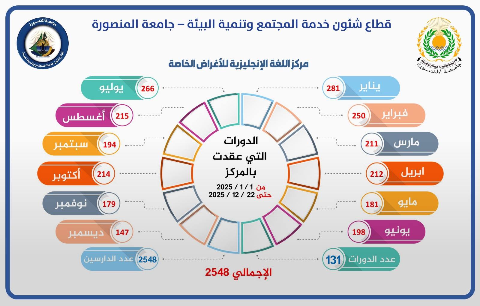 واختتم التقرير بالإشارة إلى النشاط المكثف الذي شهدته الوحدات والمراكز الخدمية بالجامعة خلال عام 2025، ومنها مركز الطباعة والنشر، ووحدة المركبات، وبيت التطوع، ومشاتل الجامعة، وورش الجامعة، ومركز دار الضيافة والمؤتمرات، ومركز رعاية وتنمية الطفولة، ومركز التجارب والبحوث الزراعية، وصندوق الرعاية الطبية، ومركز اللغة الإنجليزية للأغراض الخاصة، إلى جانب مصيف العاملين بجامعة المنصورة بجمصة، وفندق جامعة المنصورة برأس البر، بما يعكس تكامل منظومة الخدمات المجتمعية والاقتصادية التي تقدمها الجامعة لدعم منسوبيها.