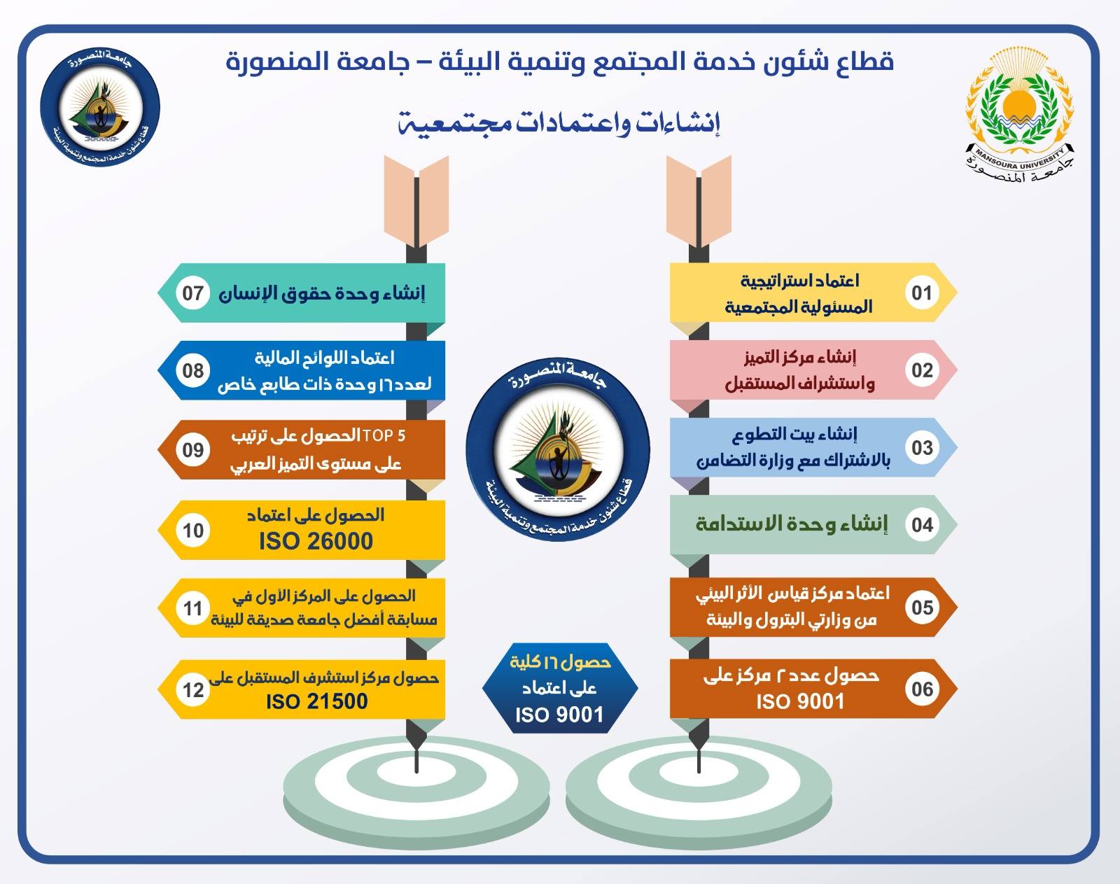 رئيس جامعة المنصورة يستعرض تقرير الحصاد السنوي لقطاع خدمة المجتمع وتنمية البيئة لعام 2025 بشعار «المسؤولية والريادة».. جامعة المنصورة تُتَوَّج بلقب «أفضل جامعة صديقة للبيئة» وتحصل على شهادة ISO 26000
