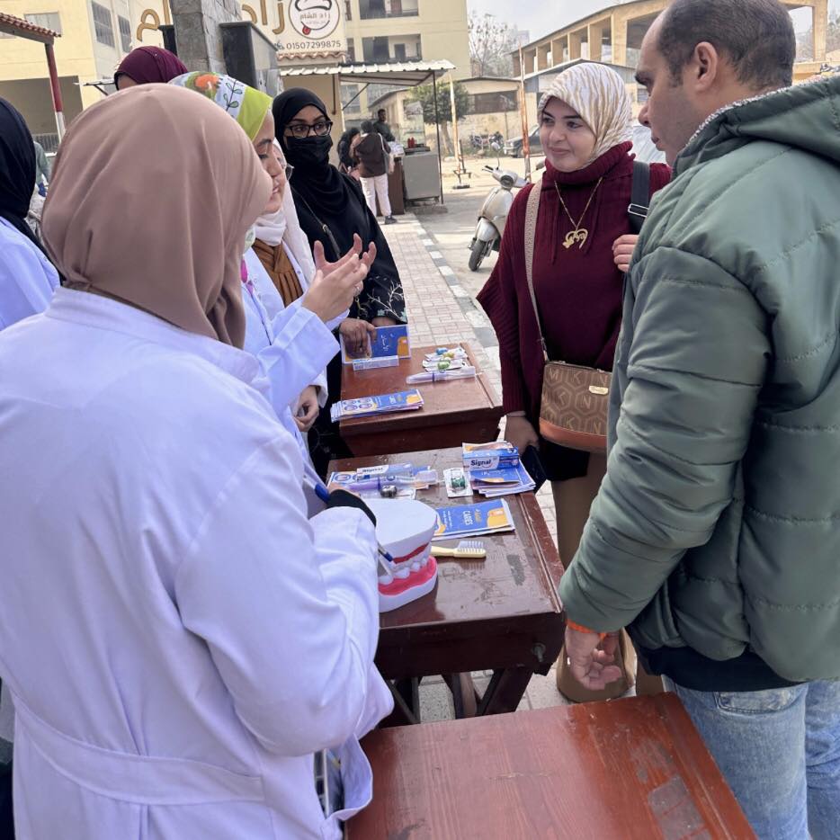 - القافلة التوعوية الثانية لكليه التمريض: تضمنت ا.د/ رباب إبراهيم سلامه و د. بسمه حمزة مدرس صحة الفم و د. هدير وائل وسلسبيل محمد (م.م صحة الفم) وعدد (٣٠) طالب وطالبه من طلاب كليه طب الاسنان