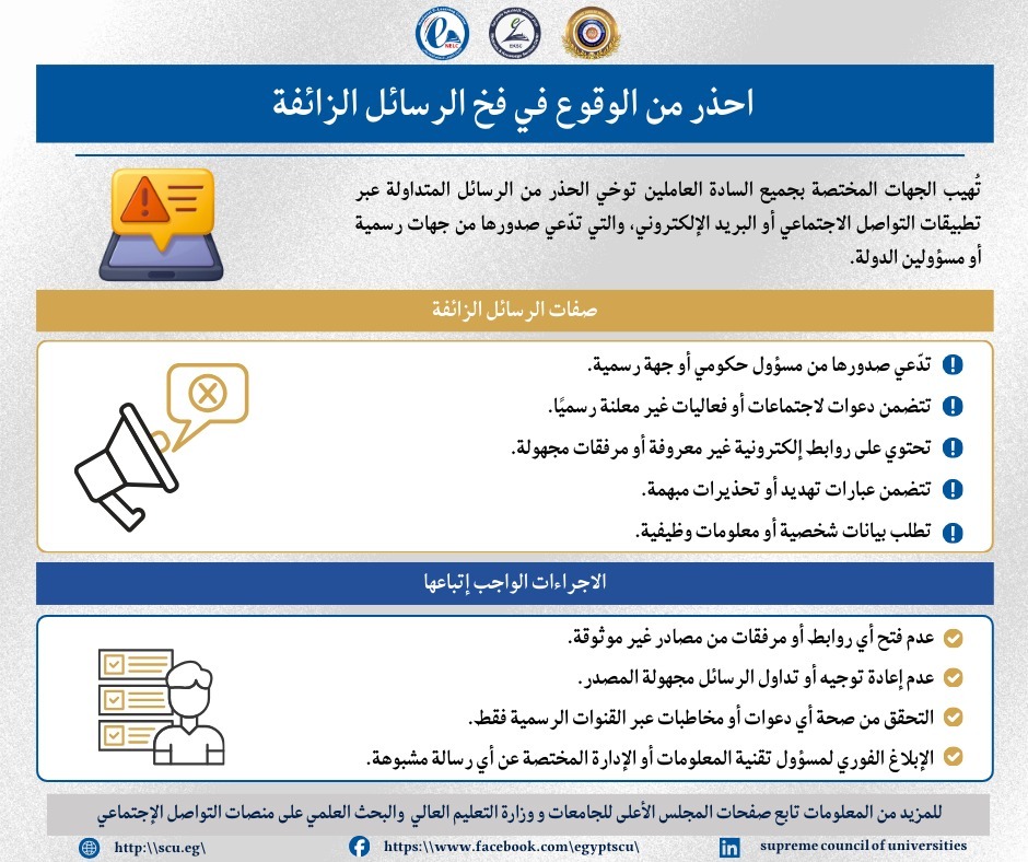 المجلس الأعلى للجامعات يُحذِّر من الرسائل الزائفة ويدعو للاعتماد على القنوات الرسمية