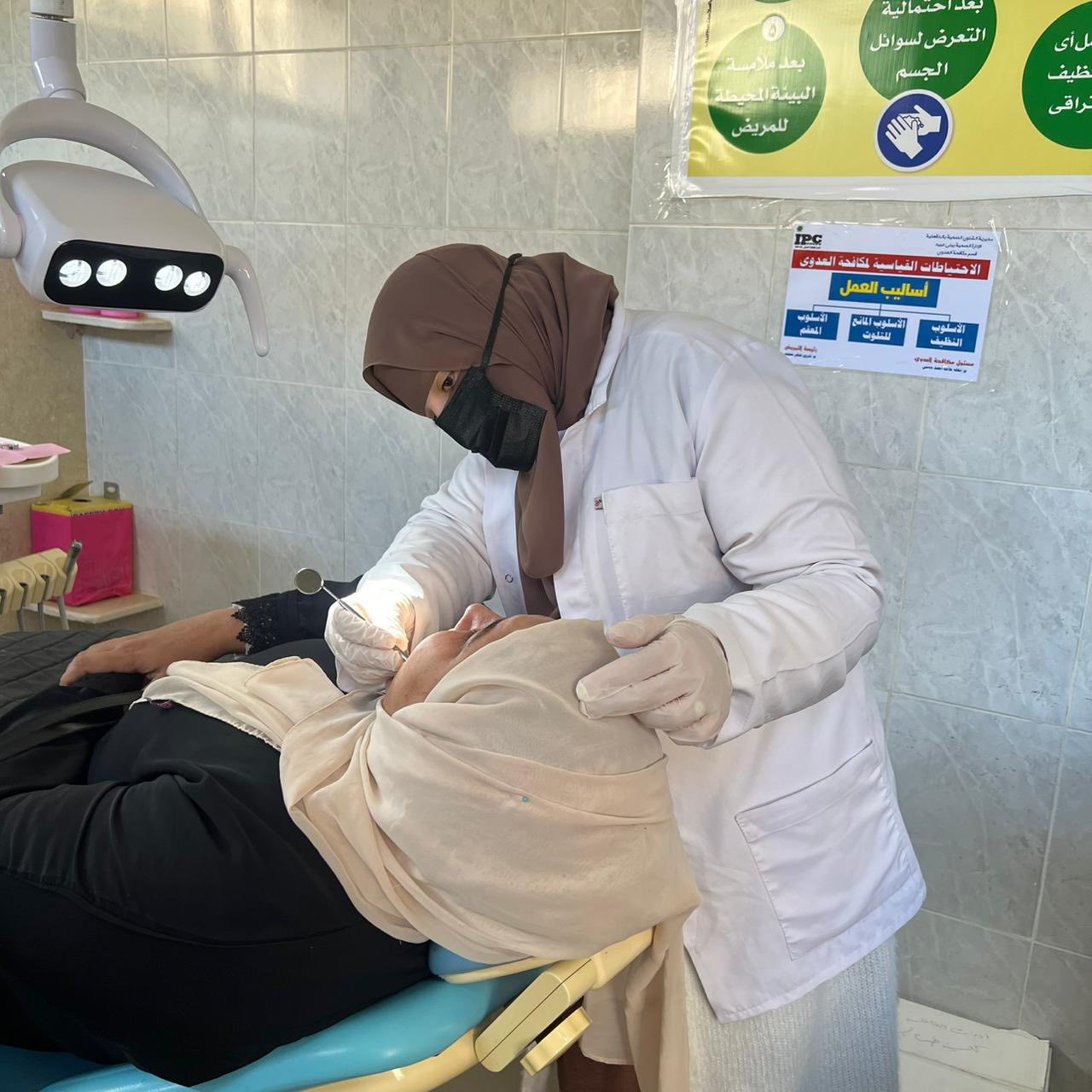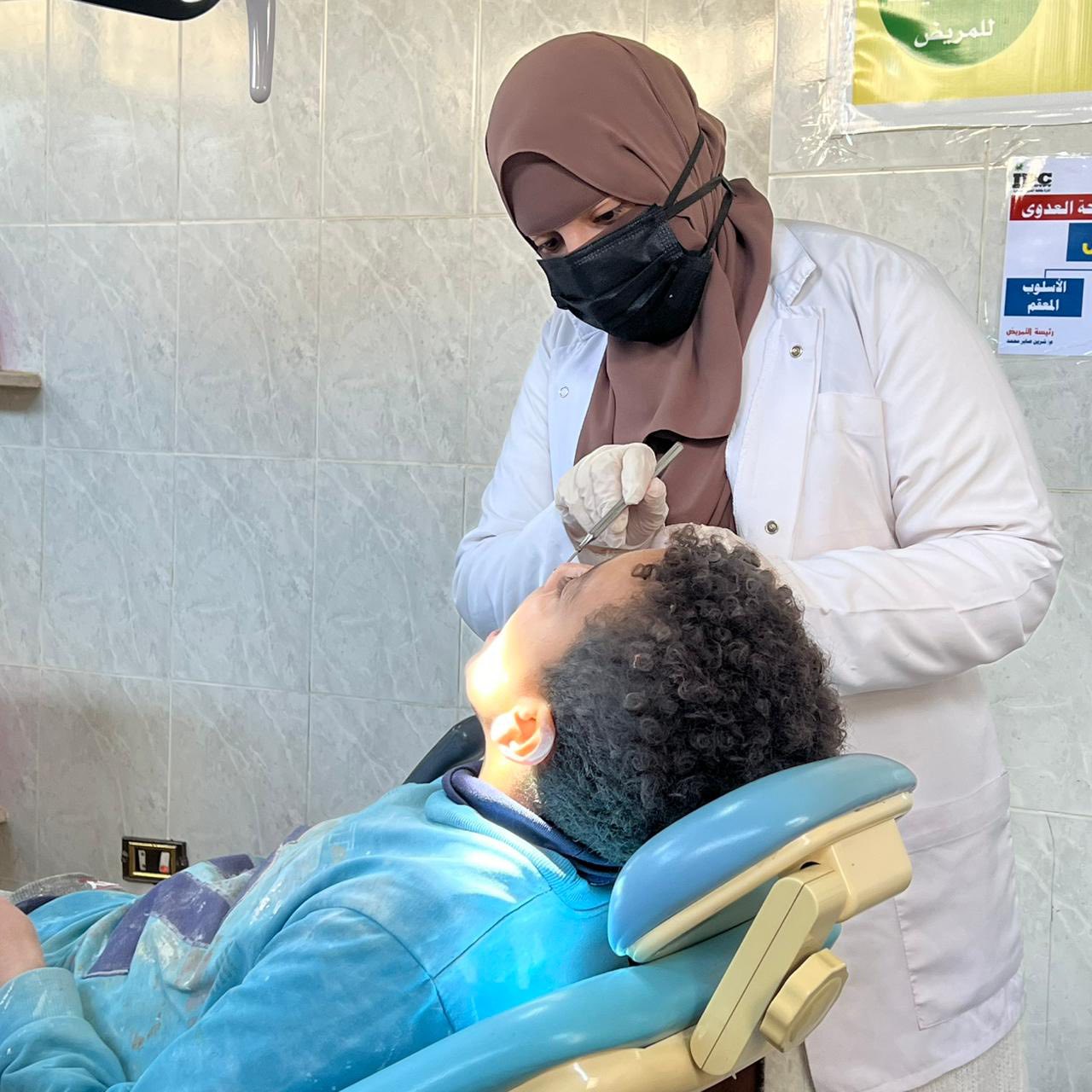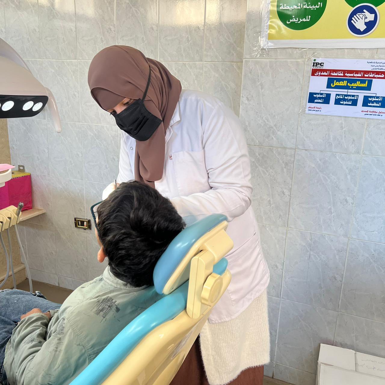 قام الفريق بعمل كشف وتشخيص الحالات وعمل بعض العلاجات التي تستدعي كتنظيف الجير وعلاج اللثه حيث تم الكشف وعلاج متنوع من خلع وحشو اسنان لعدد (٧٥) حاله وتحويل عدد من الحالات الي عيادات الكليه المختلفة بكافة التخصصات كما تم عمل توعيه صحية عن كيفية العناية بالفم والاسنان والكشف المبكر عن اورام الفم