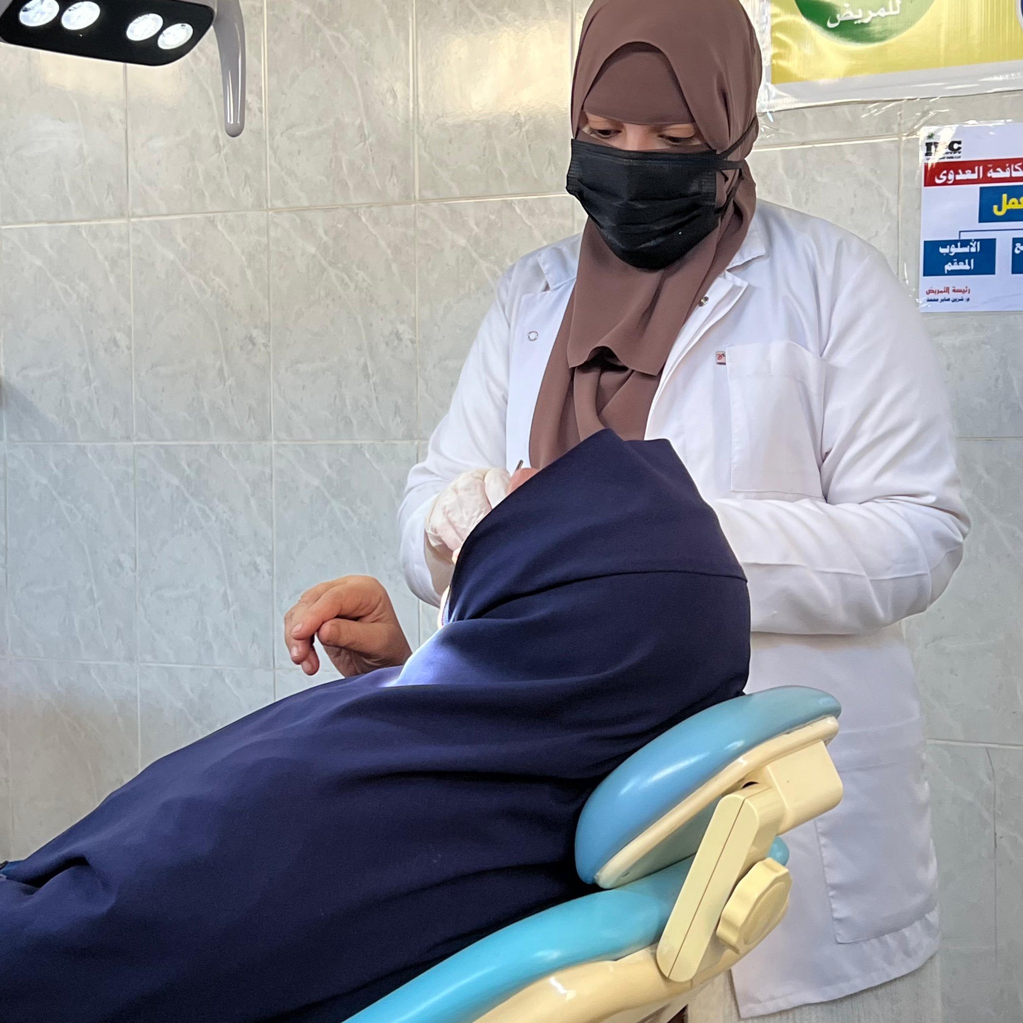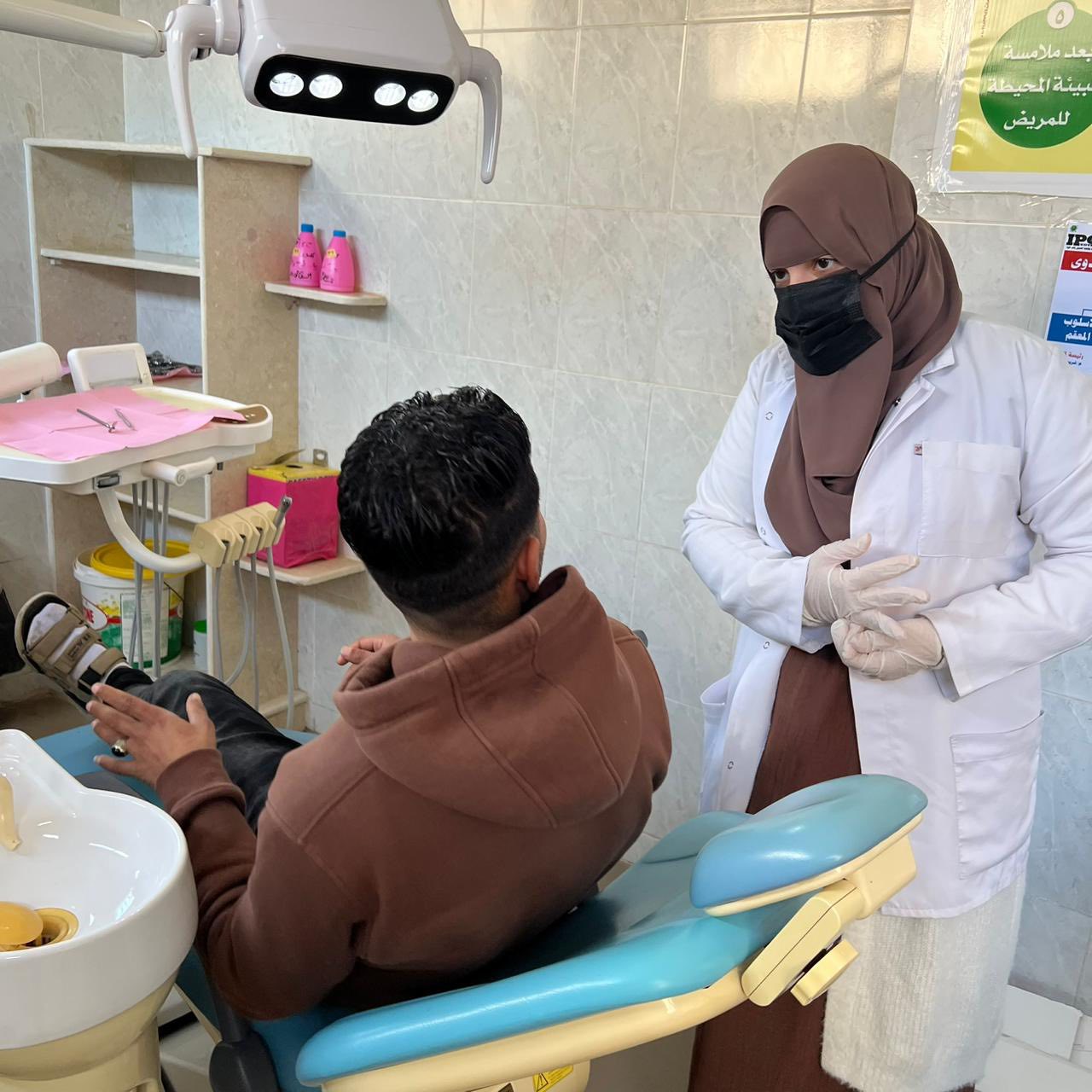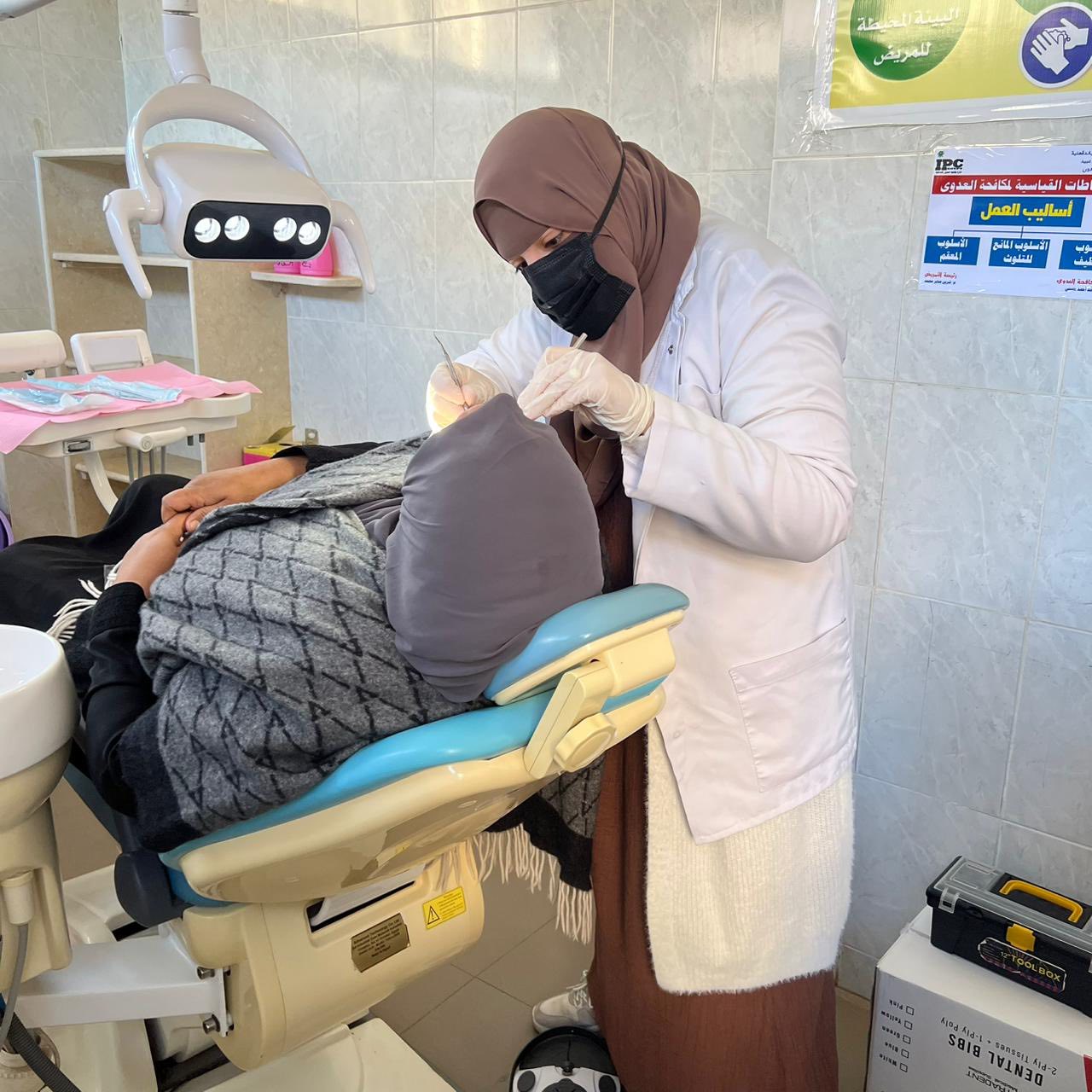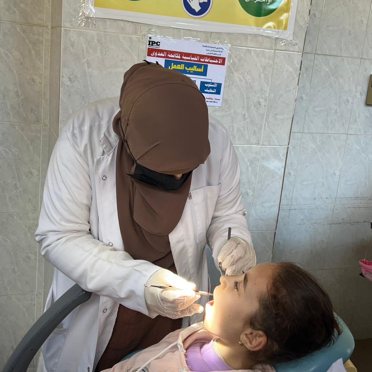 قام الفريق بعمل كشف وتشخيص الحالات وعمل بعض العلاجات التي تستدعي كتنظيف الجير وعلاج اللثه حيث تم الكشف وعلاج متنوع من خلع وحشو اسنان لعدد (٧٥) حاله وتحويل عدد من الحالات الي عيادات الكليه المختلفة بكافة التخصصات كما تم عمل توعيه صحية عن كيفية العناية بالفم والاسنان والكشف المبكر عن اورام الفم