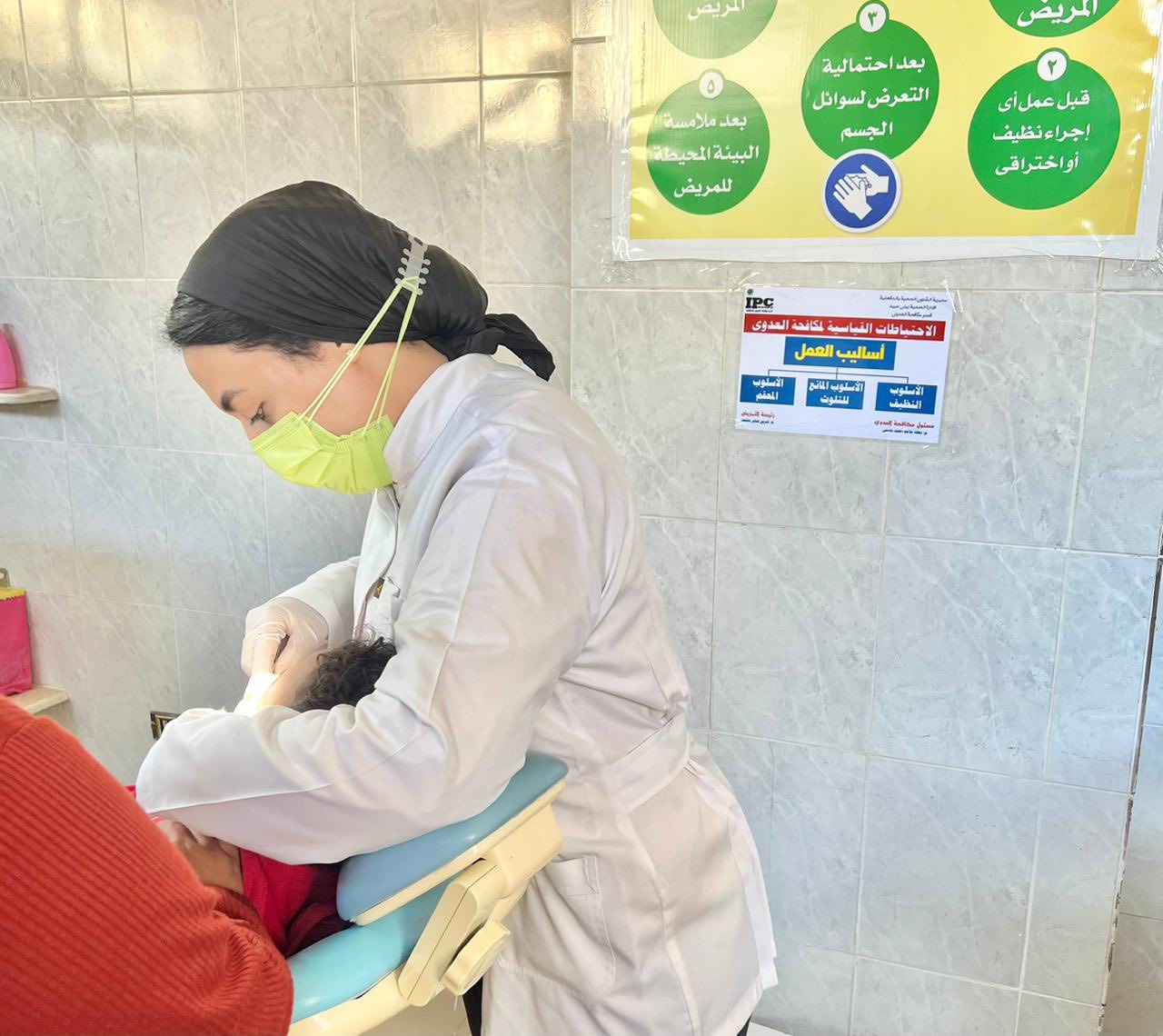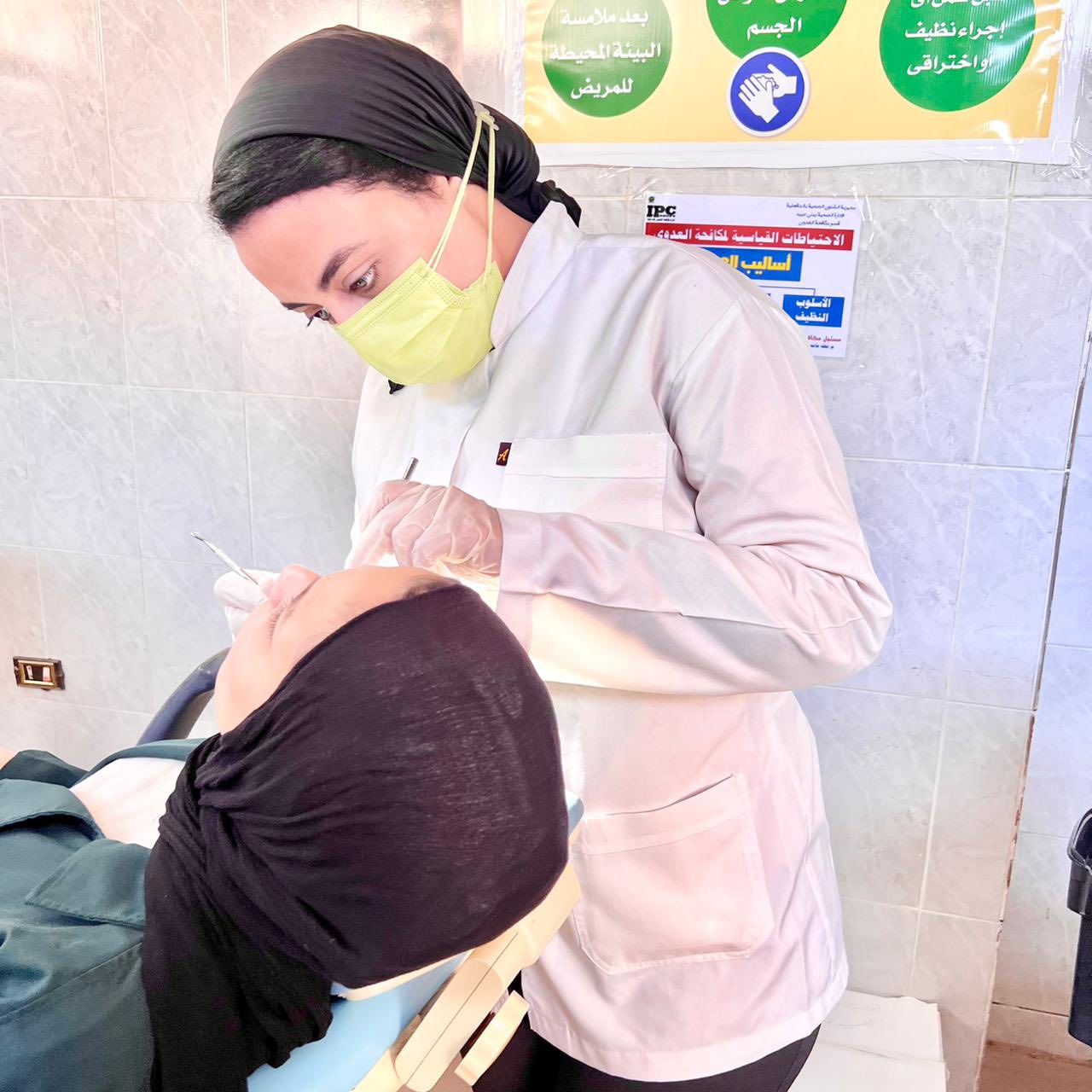 حيث ضم فريق كليه طب الاسنان كلا من الطبيب / آلاء طارق (م.م/ صحة الفم) والطبيبة / مريم أبو زيد (م/ صحة الفم) ومن هيئه التمريض الأستاذ احمد محمد علي