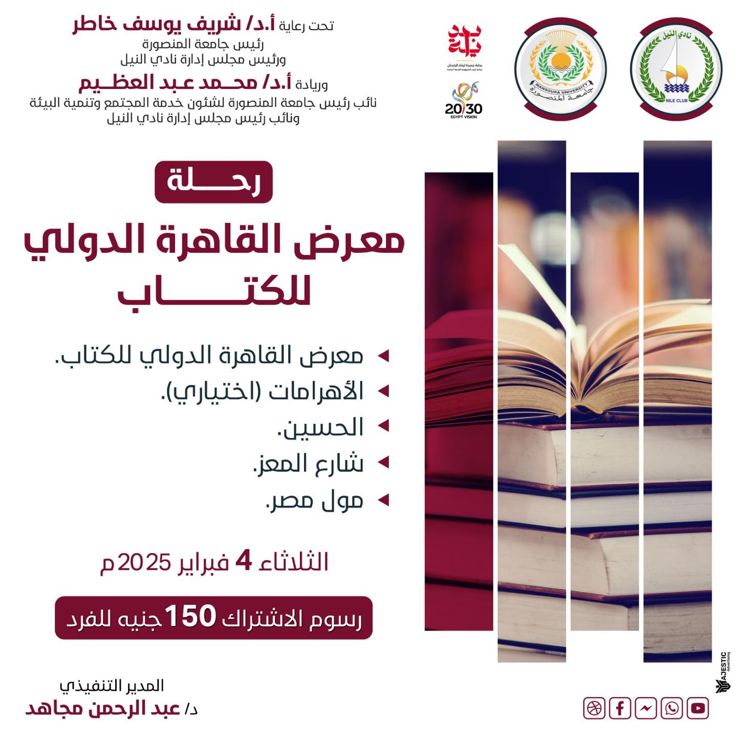 - جامعة المنصورة تشارك في معرض القاهرة الدولي للكتاب 2025 لتعزيز البحث العلمي والثقافة الأكاديمية