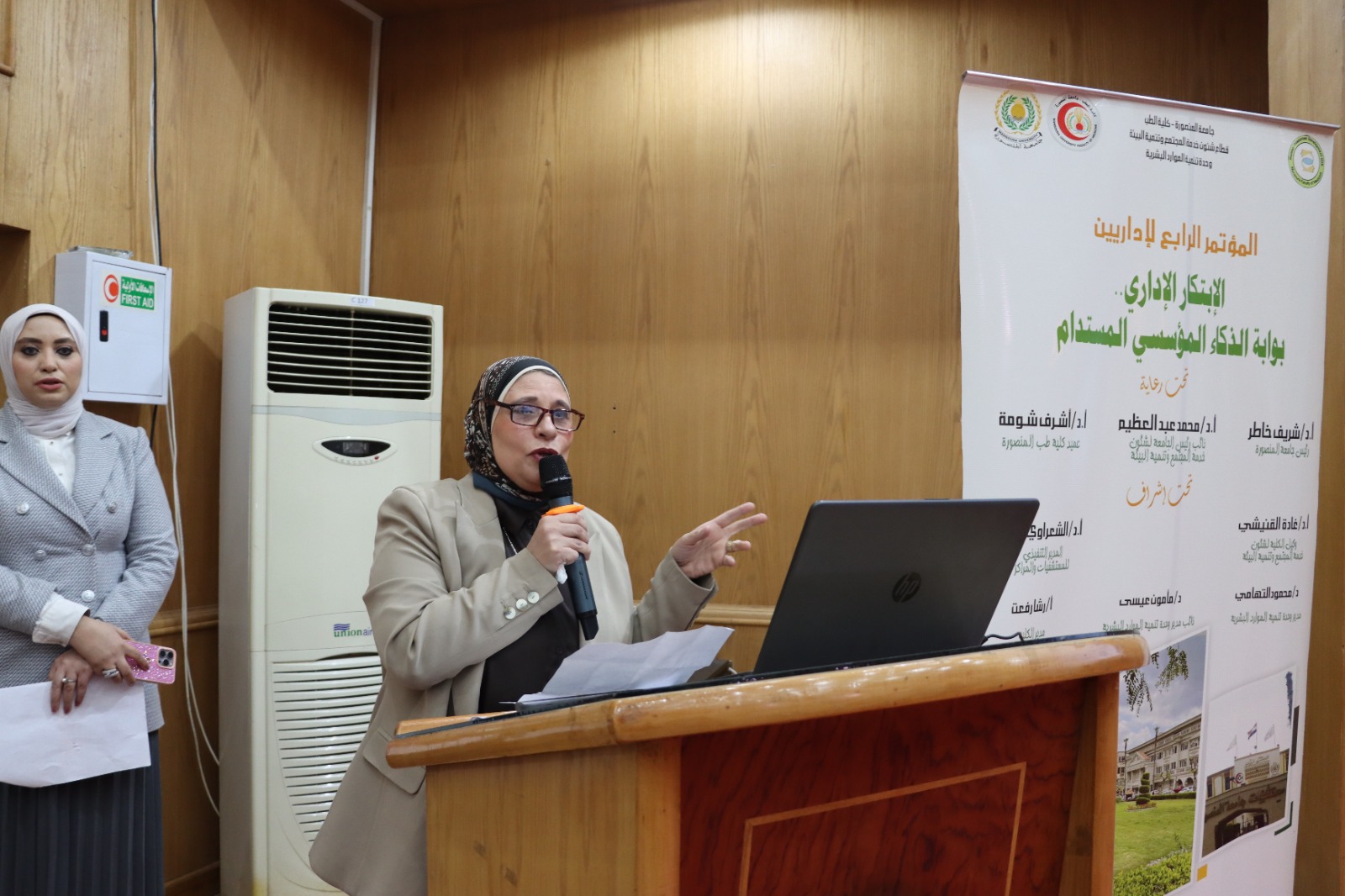 وقد افتتحت الدورة بمحاضرة قدمها الأستاذ الدكتور وائل خفاجي، أستاذ الجراحة العامة بكلية الطب، تناول فيها أهم أسس الإسعافات الأولية، وكيفية الحفاظ على حياة