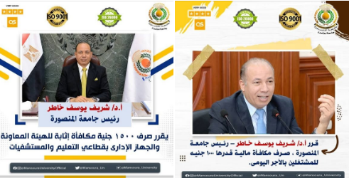 قرر الدكتور شريف خاطر، رئيس جامعة المنصورة، زيادة الأجر الشهري للسادة العاملين بنظام الأجر اليومي بقطاعي التعليم والمستشفيات، 775 جنيهًا شهريًا، وفقًا لأيام التشغيل الفعلي، وذلك خصمًا من الموارد الذاتية للجامعة، اعتبارًا من الأول من فبراير 2026، في إطار حرص الجامعة على تحسين الأوضاع المعيشية للعاملين ودعم جهود الدولة في تحقيق العدالة الاجتماعية.