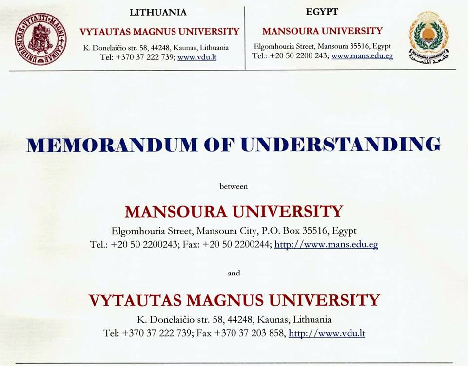 Mansoura University (MU) has signed a Memorandum of Understanding with Vytautas Magnus University (VMU) in Lithuania