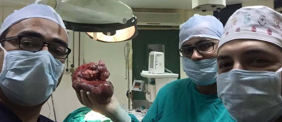 نجح فريق جراحى بمستشفى الأطفال الجامعى بجامعة المنصورة باسئصال ورم نادر الحدوث " تراتوما " وغير مستجيب للعلاج الكيماوى من بطن طفل عمره 3 شهور وهو ورم مسخى نادر حدوثه بجوار الكلى وتم اجراء الجراحة واستئصال الورم والكلى وبلغ وزن الورم كيلو وربع وقطره 20 سم وابعاده 10×15 سم